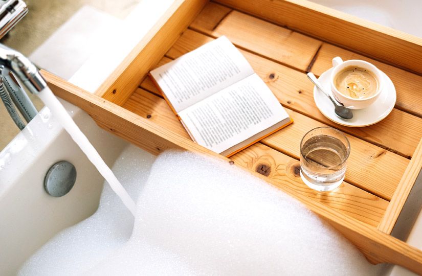 Самый продуктивный метод перезагрузки — это принятие ванны. Опытные кемперы рекомендуют купить специальную полку-столик и перед купанием разместить на ней свечи, напиток в красивом стакане и вкусное угощение. Рядом можно поставить колонку с приятной музыкой. Получится отдых не хуже, чем в спа-салоне.