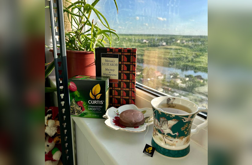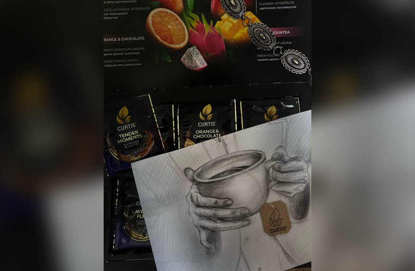 Самой интересной частью проекта стал фотоконкурс и розыгрыш сорока подарков: больших наборов чая, бокалов, сертификатов «Яндекс Афиши» и «Золотого Яблока» номиналом 4000 рублей. Для участия нужно было сделать фото с чаем CURTIS и поделиться фотографией на страничках конкурса в «Телеграме» или «ВКонтакте». Давно редакция не получала такого количества пользовательского контента, а некоторые шедевры мы хотим сохранить для истории. Листайте карусель — и поймете почему.