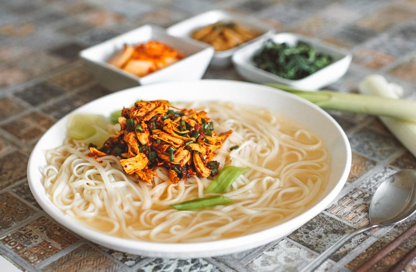 В корейской кухне аналог сомена подают с острой едой, как закуску к алкоголю.