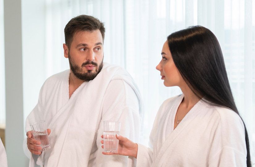 - Алкоголь и хаммам несовместимы. Точно так же, как алкоголь и баня. Высокая температура в парной в дуэте с горячительными напитками резко увеличивает риск обезвоживания и дает огромную нагрузку на сердечно-сосудистую систему.