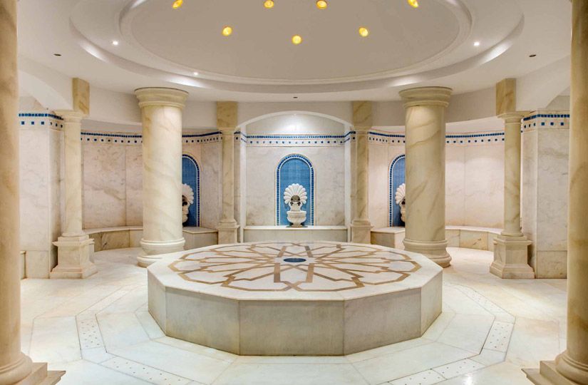 Особенность хаммама в том, что его жар не сухой, как в сауне, и не шокирующий, как в бане, а влажный и весьма умеренный. Насыщенность воздуха влагой в хаммаме доходит до 100%, а это способствует расслаблению и благоприятно сказывается на состоянии кожи.
