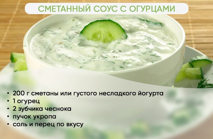 Свежие огурцы хорошо сочетаются с кисломолочными продуктами (сметаной, йогуртом). А смешав их, вы получите вкусный соус, похожий на тартар и греческий дзадзики.