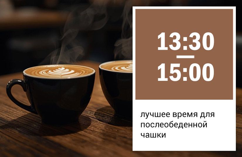 Это значит, что кофе в 14:00 подзарядит вас как раз до конца рабочего дня. К вечеру действие напитка ослабеет, и можно будет спокойно переключиться на отдых.
