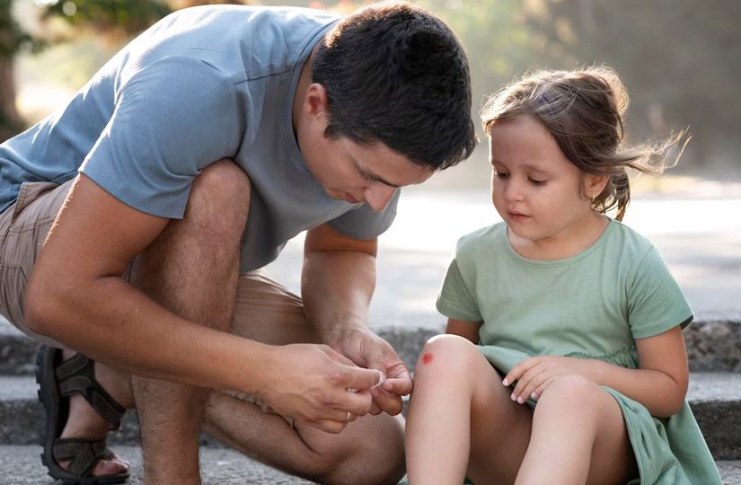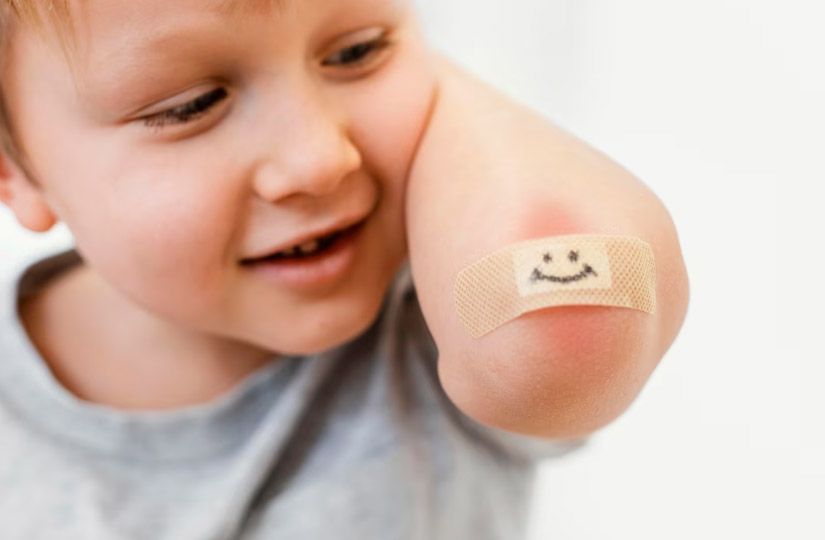 Чтобы в открытую рану не попала инфекция, закрывайте ее повязкой на время игр на улице, но потом сразу снимайте — так она заживет быстрее. Прежде чем наложить повязку, убедитесь, что ссадина подсохла, иначе произойдет повторная травматизация при снятии бинта (и будет больно).