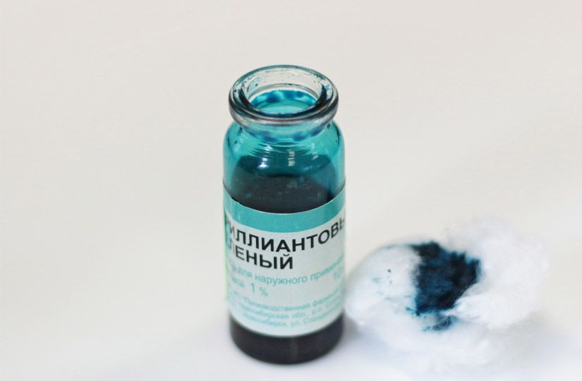 Главные минусы зеленки — агрессивный спирт в составе, вероятность повреждения слизистой (особенно опасен раствор при попадании в глаза) и ярко-зеленый окрас, долго не смывающийся с кожи и портящий одежду.