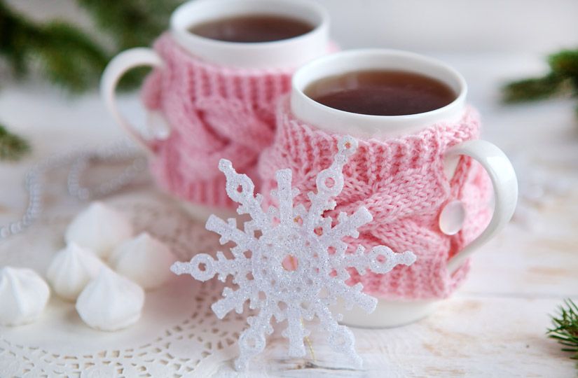 Яркий вязаный чехол не повлияет на вкус чая, зато превратит обычную кружку в праздничный аксессуар. Будет особенно здорово, если вы свяжете его сами!