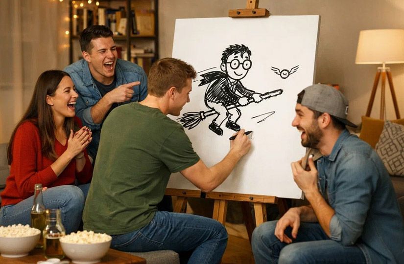 Отказаться от всеми любимого «Крокодила» может быть непросто, поэтому предлагаем заменить его похожей игрой. Понадобятся карточки с названиями фильмов или сериалов, кастрюлька, большие листы бумаги, которые будут крепиться на импровизированном мольберте, маркер и совсем немного творчества.
