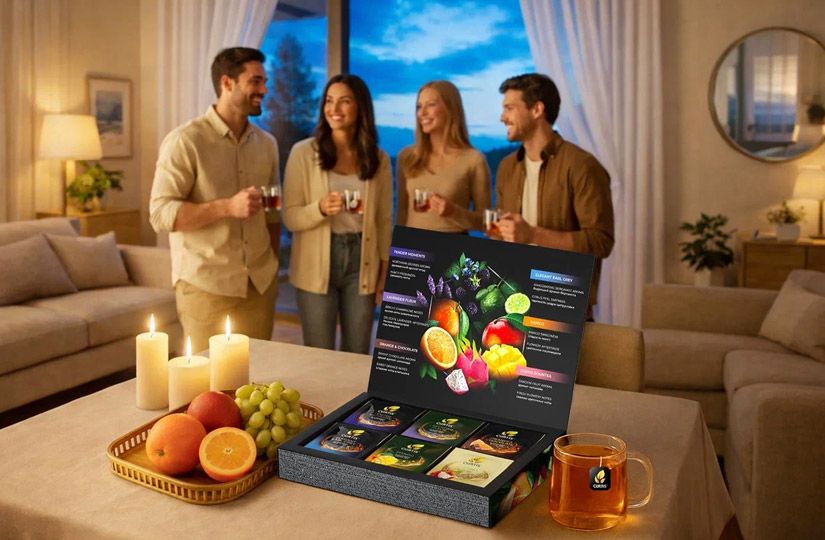 Заварите чай в кружках, для надежности завяжите участникам глаза и предложите угадать главные ноты и вид напитка — черный, зеленый, тизан. Для облегчения задачи можно огласить список заранее и показать набор перед дегустацией, чтобы игроки знали, что искать нужно манго и северные ягоды, а не персик с малиной. Но угадывать вслепую все же интереснее.