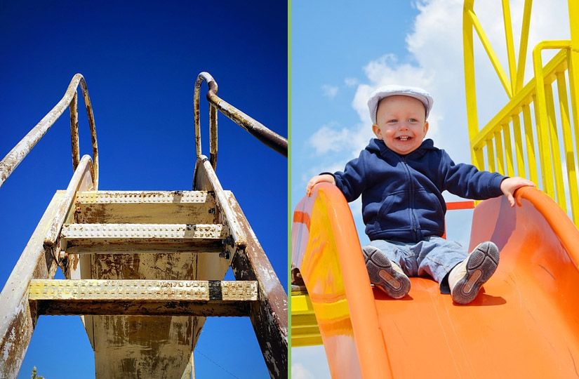 Деревянные комплексы считались более красивыми, но менее практичными, чем антивандальные металлические, способные пережить даже нашествие старшеклассников. При этом советские площадки, с точки зрения современных родителей, не всегда можно было назвать безопасными: на качелях без ограничителей дети крутили «солнышко», по шведским стенкам можно было подниматься на высоту до двух метров, а об горки ничего не стоило поцарапаться, при этом их угол наклона вызвал бы у нас сегодня серьезные сомнения.