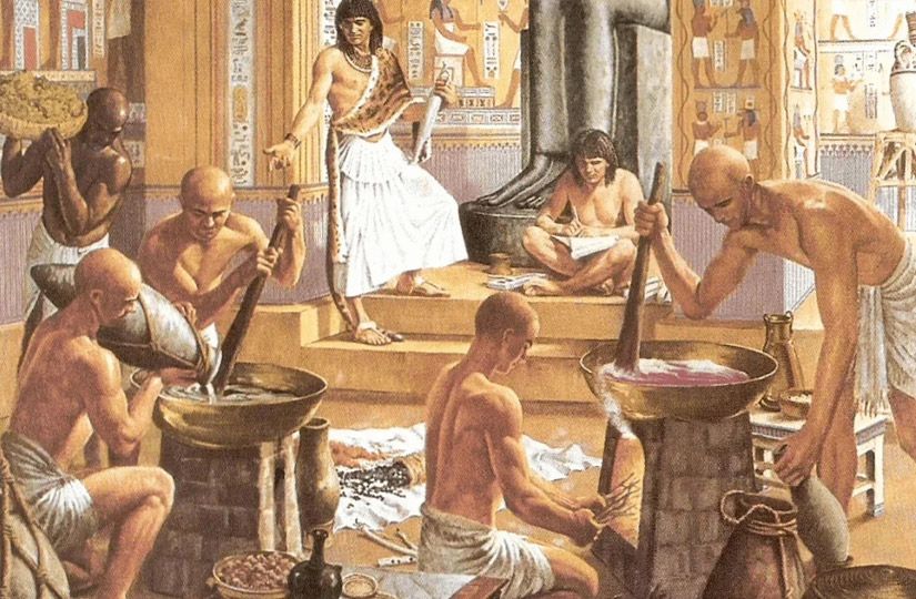 Хозяйки в Древнем Египте и Греции, которые стирали белье в реках, быстро обнаружили, что тоги и туники отстирывать проще всего в водоемах рядом с местами жертвоприношений. Затем, как это обычно происходит со случайными открытиями, кто-то попробовал варить животный жир, смешанный с золой деревьев, до полного выпаривания влаги: так и получилось первое мыло, которое было очень похоже на современное (с поправкой на цвет и аромат). Конечно же, ни место изобретения, ни имя конкретного человека, который до этого додумался, неизвестны. Вероятно, открытие произошло одновременно в нескольких древних государствах.