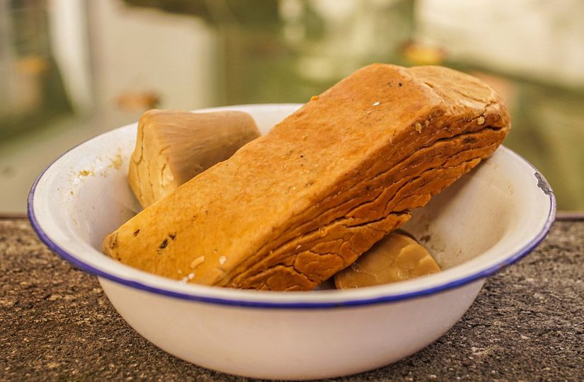 Во всей этой истории особый интерес вызывает именно эта формула. На брусках темно-коричневого цвета и в наше время можно увидеть цифры: 72, 69 или 64. Это количество жиров и щелочи, которые содержатся в мыле. Чем выше цифра, тем их больше, тем качественнее считается продукт и тем лучше он подходит для хозяйственных и бытовых нужд.