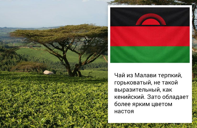 Политические кризисы негативно отразились и на чайной отрасли в Уганде, Эфиопии, Бурунди, Танзании. Второй производитель африканского чая после Кении — относительно стабильная Республика Малави, но ей меньше повезло с климатом. Чай здесь растет не очень высоко — всего 600 метров над уровнем моря — и часто страдает из-за засух или обильных осадков.