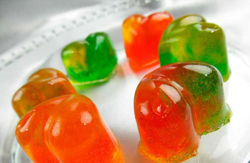 С помощью агар-агара можно получить не только плотное желе. Например, для того, чтобы создать гелеобразную структуру (для варенья или джема), нужно разводить агар в пропорции 0,8 г на 500 мл жидкости (0,16%), для мягкой текстуры, похожей на суфле, или для мороженого – в пропорции 1,5 г на 500 мл (0,3%), для «резиновой» текстуры, необходимой для мармелада, – от 1 до 1,4 г на 500 мл (1–1,4%).