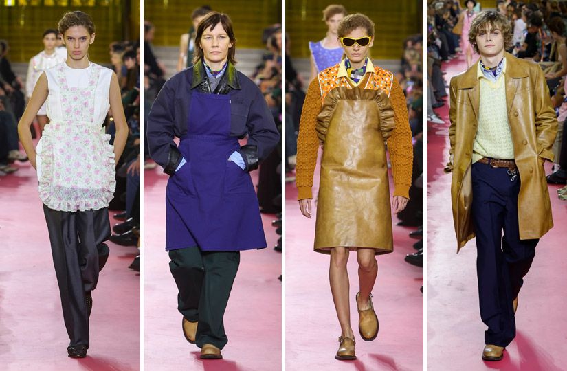 «Фартук — моя любимая вещь в целом, — говорит Прада. — В моде мы вечно твердим о гламуре и богатстве, но надо понимать, что жизнь устроена иначе. Для меня фартук символизирует реальную, трудную историю женщин — от фабричных станков до домашнего очага».