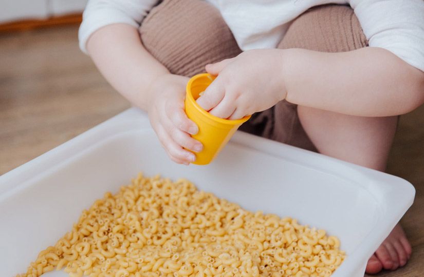 – перекладывание крупных макарон или фасоли из одной миски в другую или их тщательное перемешивание.