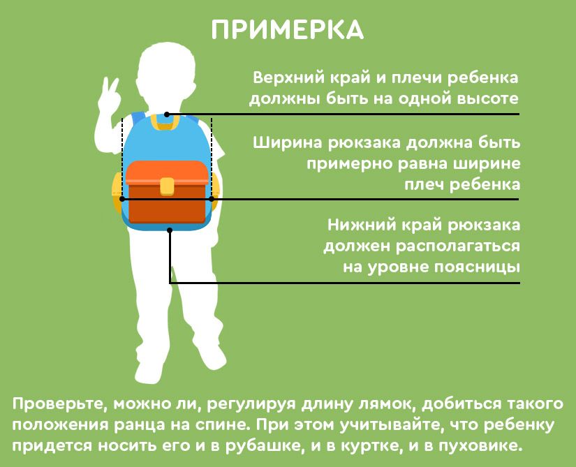 Размеры. Ширина рюкзака должна быть примерно равна ширине плеч ребенка, верхняя граница должна совпадать с высотой плеча, а нижняя приходиться на поясницу. Это обеспечит правильную нагрузку на детскую спину.