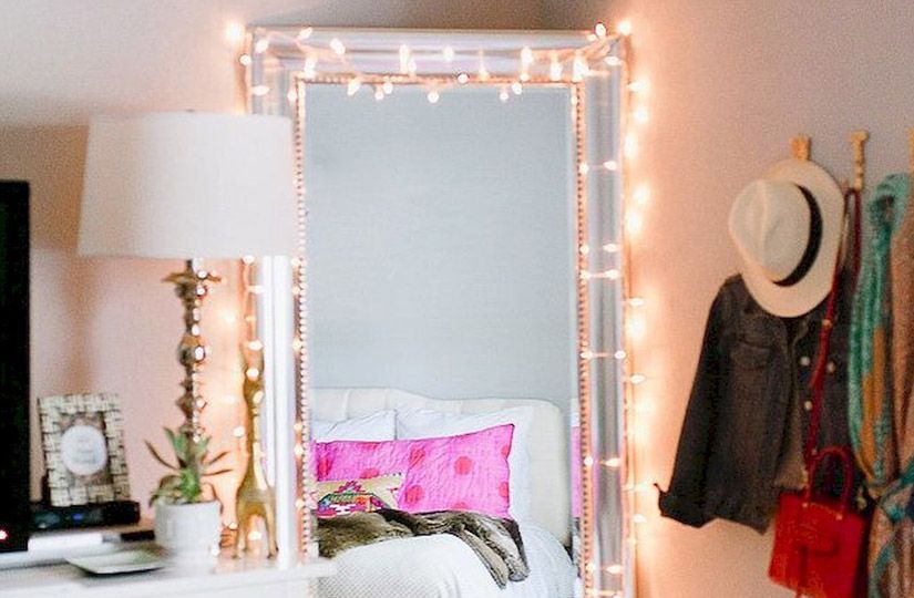 Пожалуй, самый простой способ украсить комнату – это использовать в качестве основы зеркало. Просто закрепите гирлянду по его периметру и наслаждайтесь удвоенным светом праздничных огней! Идеально для спальни, ванной комнаты или прихожей.