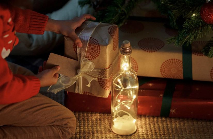 Гирлянда в бутылке, вазе или стеклянном фонаре – это необыкновенно уютно и мило. Так и кажется, что в доме поселилась добрая магия. Лучше всего подойдут гирлянды на батарейках, хотя и обычные тоже будут уместны.