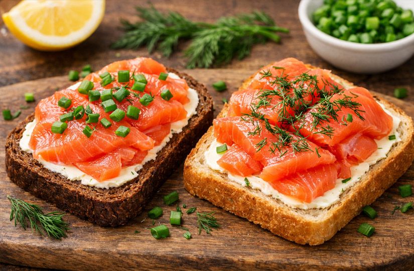Классический вариант — на ломтиках ржаного или пшеничного хлеба с легким слоем сливочного масла, присыпанного мелко нарезанным зеленым луком или укропом. Часто бутерброды с рыбой дополняют лимоном, а масло заменяют творожным или сливочным сыром. Для более диетической версии бутербродов можно использовать хлебцы или пресные крекеры.