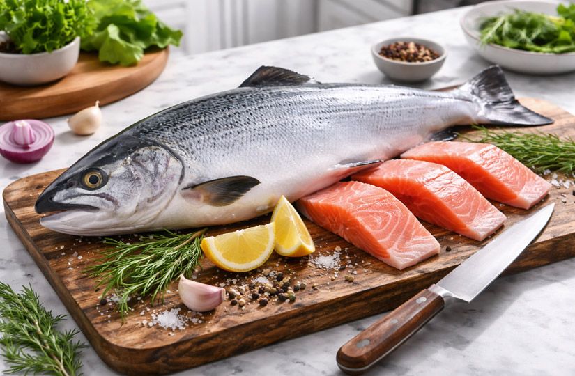 Если вы остановились на охлажденной рыбе, убедитесь в ее свежести. Глаза должны быть чистыми и блестящими. Жабры — насыщенного красного цвета. Кожа упругая, без малейших признаков порчи. Слегка надавите пальцем на тушку — рыбка должна моментально расправиться. Пахнет свежий лосось морем, очень ненавязчиво.