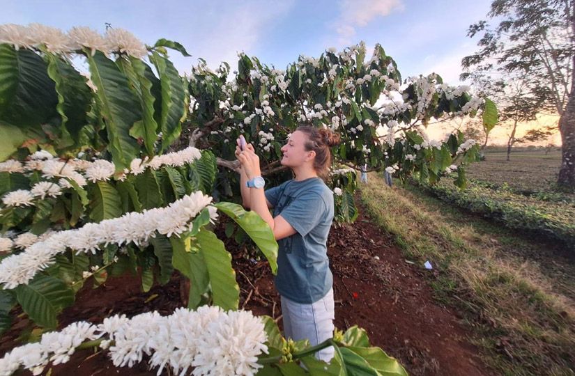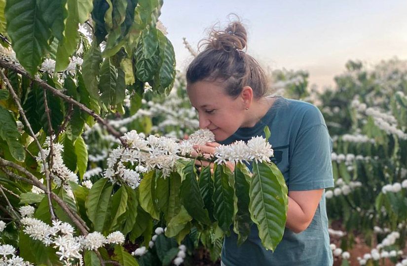 У Юлии большой опыт путешествий: ей удалось объехать почти весь кофейный пояс. На этот раз рабочая командировка привела ее на плато Бадан, где как раз зацвела робуста высокого качества, также известная как fine robusta, или премиум робуста. Обычно урожай на этой плантации довольно маленький и потому особенно ценный. Находится она выше, чем плантации других регионов, и кофейные деревья начинают цвести уже в январе. Это значит, что сбор урожая стартует в августе, в то время как основной сбор робусты приходится на ноябрь-декабрь.