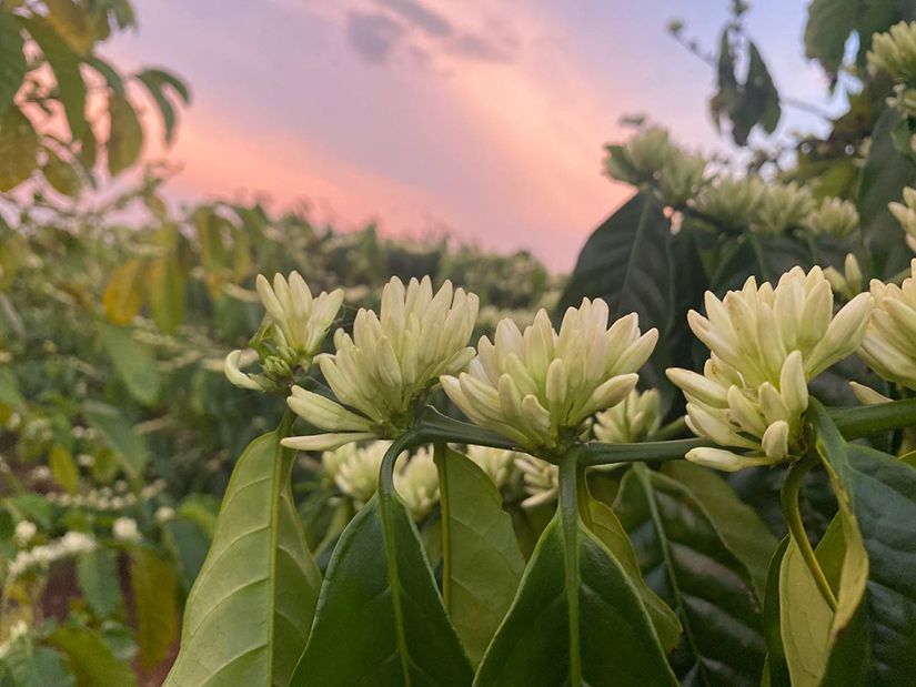 Вьетнам несколько уступает той же Бразилии в плане зрелищности: плантации расположены не на горных террасах, а в равнинной местности. Поэтому здесь нет возможности подняться на возвышенность и оттуда обозревать кофейные деревья, горы и бескрайнее небо. Зато цветет робуста просто сказочно. Особенно премиальные сорта. Вид кофейных деревьев, сплошь усеянных гроздьями белых цветов, покорит даже опытного путешественника, который успел повидать немало прекрасных мест. А еще над плантациями робусты в период цветения витает сладкий, нежный, пьянящий аромат. Он настолько сильный и яркий, что кажется, будто рядом разлили бочку с духами.