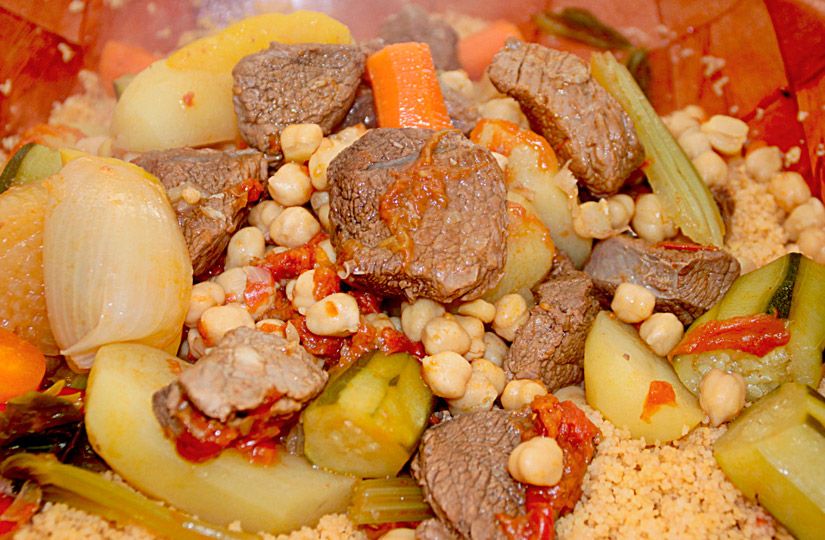 Приготовление кускуса представляло собой не просто кулинарное действо, а целый ритуал. Женщины разных возрастов собирались вместе, усаживались на пол, застеленный циновками (мужчинам вход был воспрещен, поэтому можно было не покрывать голову), рассказывали забавные истории, жаловались на мужей, детей или растущие цены и отдыхали от повседневных забот.