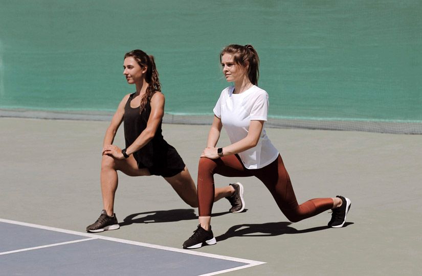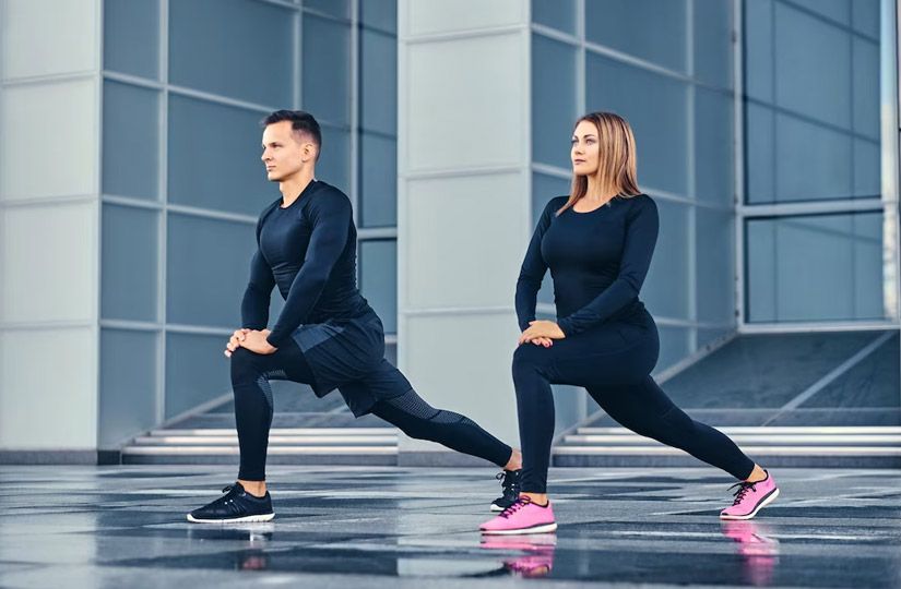 Если расставить ноги чуть шире, то задействуются больше ягодичные мышцы, а если чуть уже — квадрицепс. Если вы хотите увеличить нагрузку на ягодицы, наклонитесь немного вперед — так растяжение будет сильнее. Сделав выпад, задержитесь в этой точке на пару секунд для растяжения всех мышц.