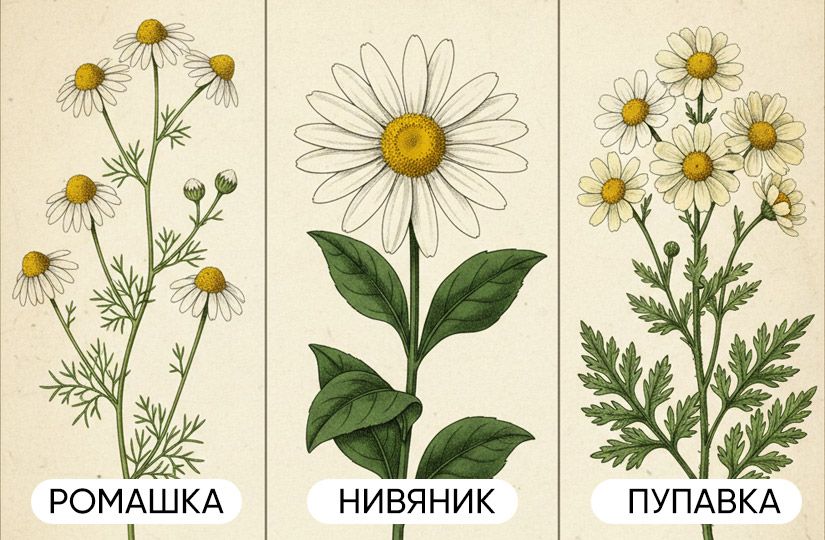Важно отличать ромашку от очень похожих на нее растений — нивяника и пупавки полевой. То есть тех самых красивых желто-белых цветов, которые летом девушки стремятся собрать для букетов, венков и фотосессий.