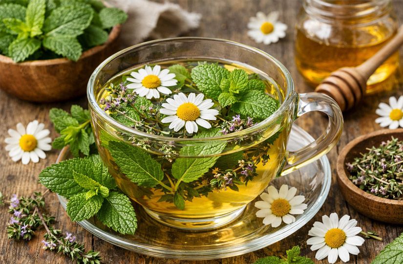 Ромашку можно сочетать с любыми травами. Однако вкуснее всего получится чай, если вы смешаете соцветия в равных пропорциях с мятой, мелиссой и чабрецом. Эти травы придают напитку легкую сладость, что уравновешивает специфический привкус ромашки.