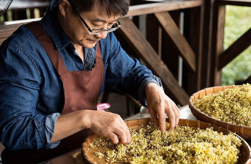 Пожалуй, самая очевидная и наиболее распространенная отрасль применения цветов османтуса – это чайная индустрия. Никто сегодня не скажет точно, когда именно китайцы придумали добавлять такой ароматизатор, но точно очень давно.