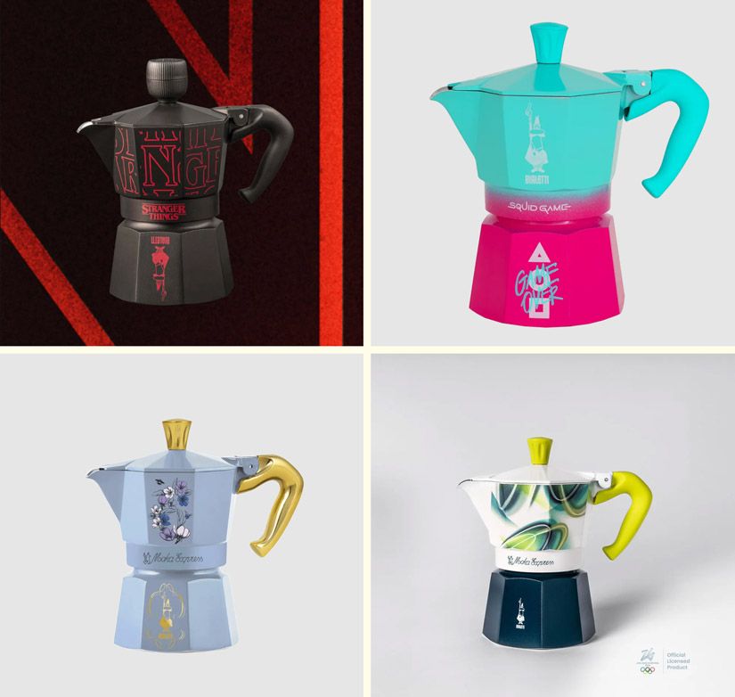 Сегодня мока скорее стильный кухонный аксессуар, чем удобная кофеварка. Бренд это понимает и делает ставку на дизайн. У Bialetti есть коллаборации с Dolce&Gabbana и Netflix: компания выпустила лимитированные серии, посвященные сериалам «Бриджертоны», «Игра в кальмара» и «Очень странные дела».