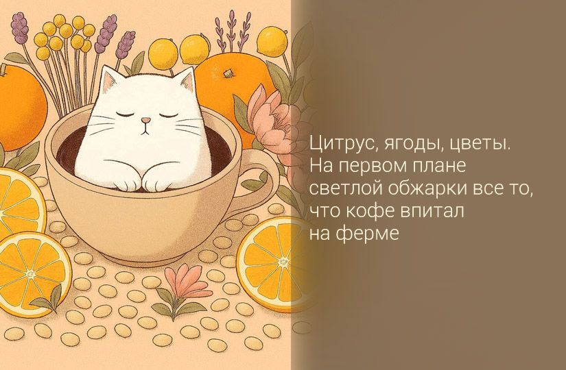 Светлая обжарка хорошо раскрывает кислотность многогранной арабики, будь то нотки смородины кенийского кофе или бергамота эфиопского «Иргачифе».