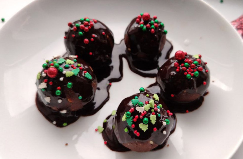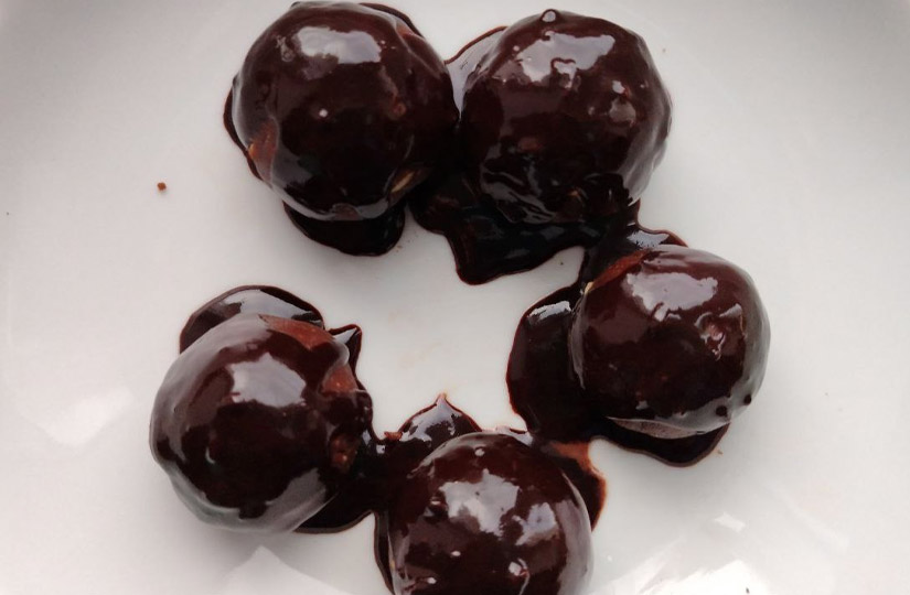 Разложите шарики на тарелке и обильно полейте их сверху глазурью. Не бойтесь потеков, они не повлияют на финальный вид десерта.