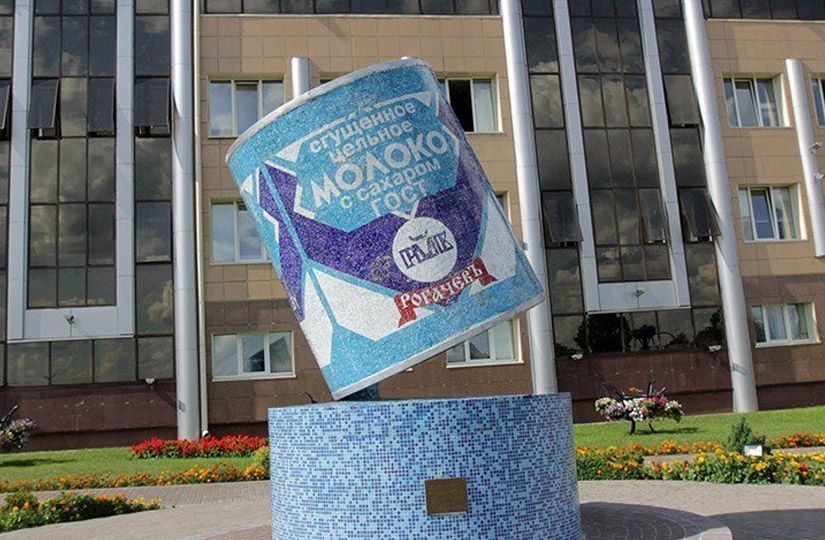 В России памятники сгущенке установлены в Сургуте и Новосибирске. Но самый интересный памятник стоит в городе Рогачеве Гомельской области (Беларусь). Трехметровую банку, искусно отделанную бело-голубой мозаикой, установили в 2013 году в честь 75-летия местного завода, где много лет производят сгущенное молоко по советскому ГОСТу, не меняя рецептуры. Кстати, сгущенка с надписью «Рогачевъ» на банке давно стала символом качества и брендом не только города, но и всей Беларуси.