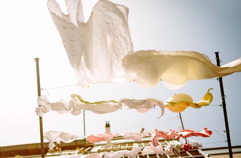 2. Не пересушивайте. Этот совет актуален, если белье сохнет на полотенцесушителе в ванной или летом на открытом воздухе. В жаркий солнечный день вещи могут высохнуть меньше чем за полчаса – все зависит от типа ткани и толщины изделия. Поэтому стоит периодически проверять белье и снимать то, что уже просохло. Пересушенное белье неприятно на ощупь и плохо гладится.