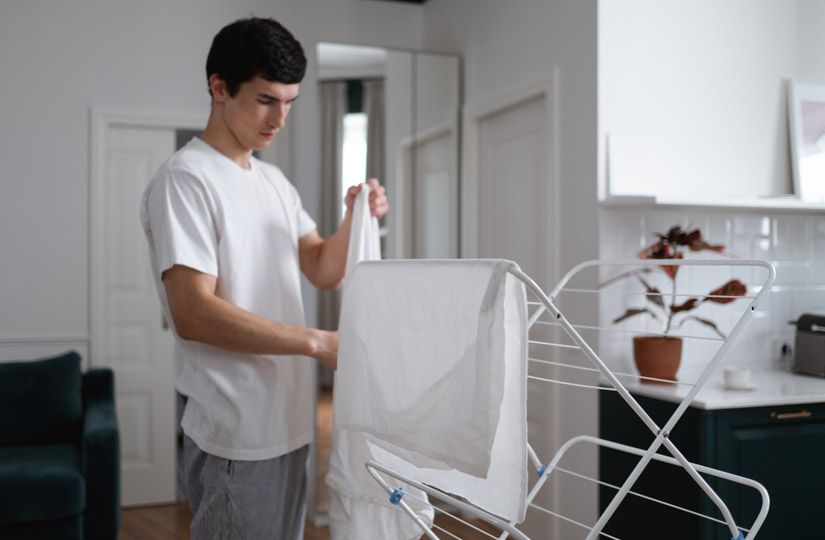 6. Не устанавливайте сушилку в кухне. Вещи после стирки отлично впитывают запахи, и вы рискуете получить наволочки с ароматом котлет или вечернее платье с луковым шлейфом.