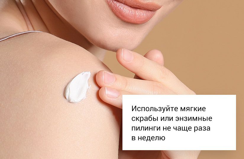 | умывайтесь прохладной водой | горячих умываний и жестких скрабов | |