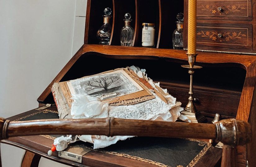 Состаривание, или дистрессинг, – это еще одна серия приемов, позволяющих придать изделию такой вид, будто ему уже пара столетий. Для состаривания обычно используют дистресс-чернила, кофе, темные чернильные подушки и даже обычную акриловую краску. Пригодятся также наждачная бумага и дистрессор. Техника подразумевает, что мастер создает на бумаге и ткани потертости, пятна, нарочитые сгибы и рваные края.