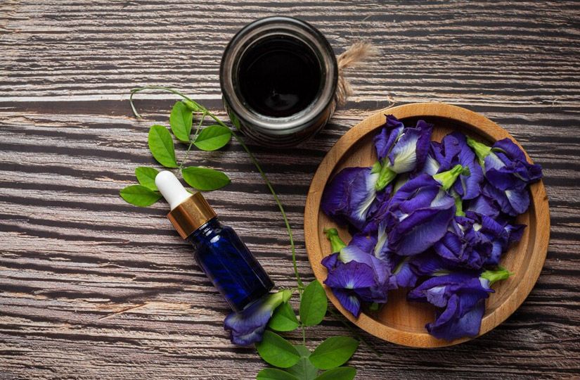 - Сухие цветы клитории тройчатой хорошо сочетаются с классическими добавками для чая — чабрецом, мятой, мелиссой, листом черной смородины.