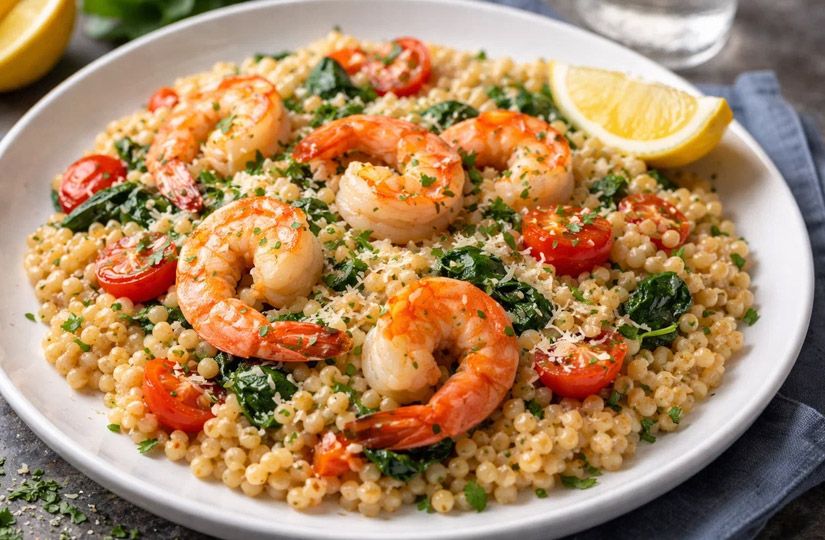 Птитим с креветками а-ля ризотто