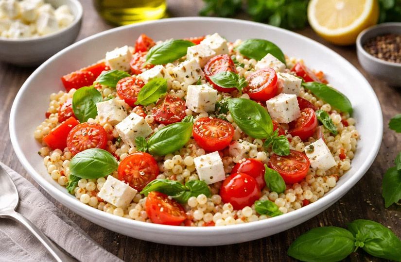Салат с томатами, фетой и птитимом