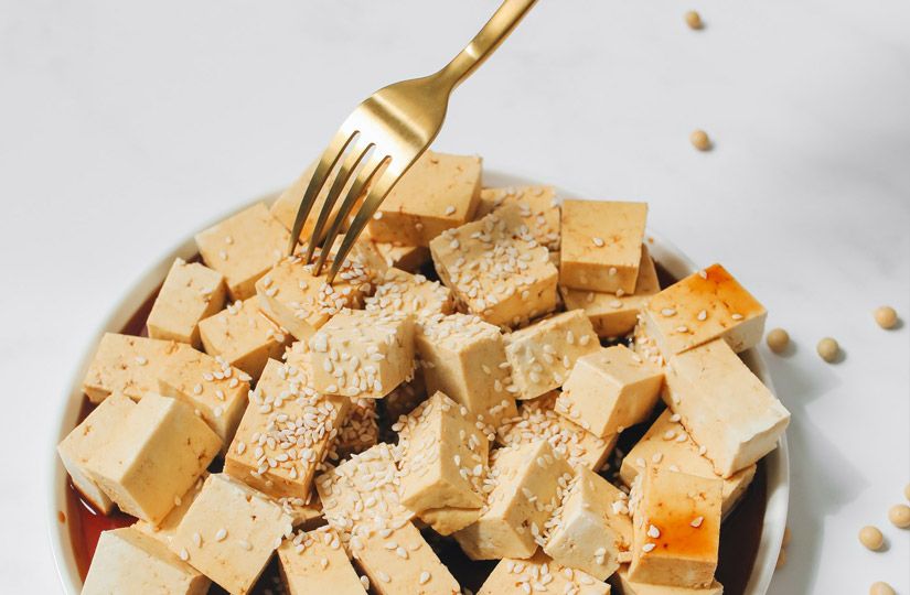 Тофу. Получается путем створаживания соевого молока. Бывает твердым, напоминающим сыр, и более мягким, как творог. Добавляется в салаты, супы, горячие блюда, в том числе как низкокалорийная альтернатива сыру и творогу. Один нюанс: соевый сыр абсолютно безвкусный, поэтому, чтобы блюдо не было пресным, выбирайте тофу с добавками, например с паприкой.