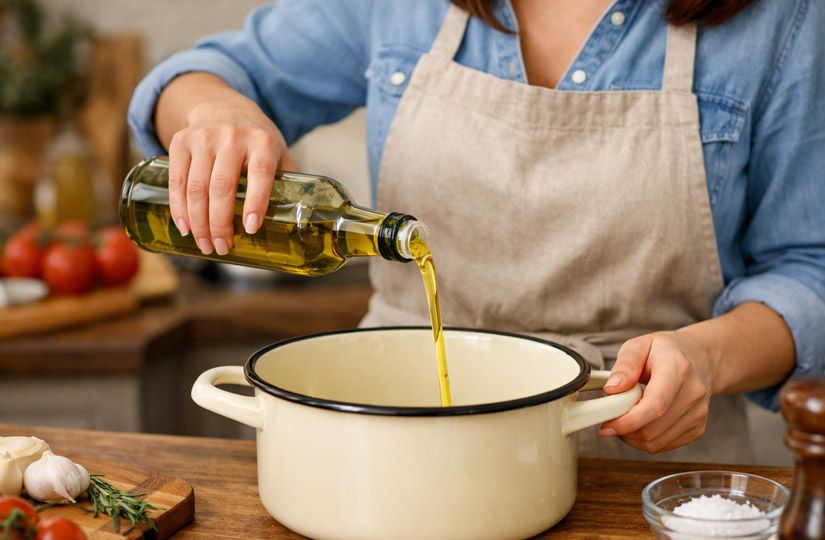 Обычно масло не хранят в холодильнике, но и жару оно не любит. Выберите самое прохладное и темное место на кухне. Скорее всего, это будет закрытый шкаф, который стоит максимально далеко от отопительных приборов и плиты. Если у вас есть подвал или погреб — это самое удачное место для хранения. Если в масле появился осадок, просто встряхните бутылку перед употреблением.
