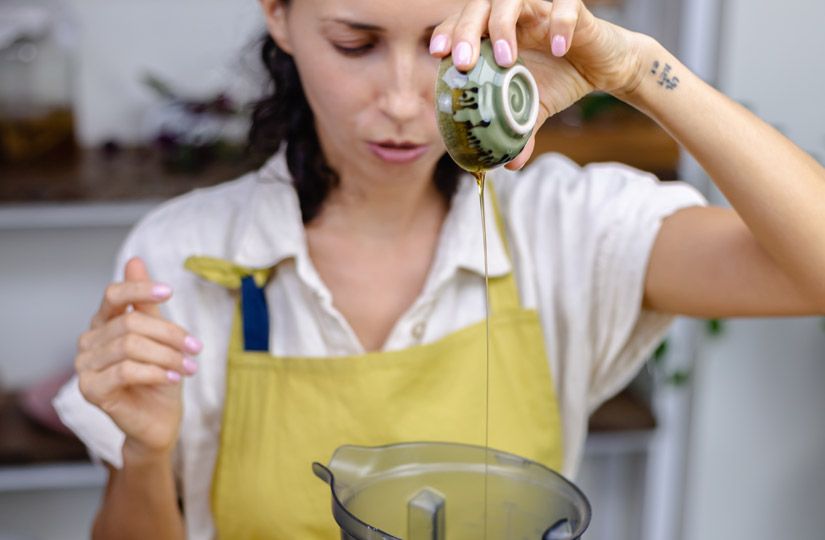 - Если масло не будет смешиваться, увеличьте скорость миксера.