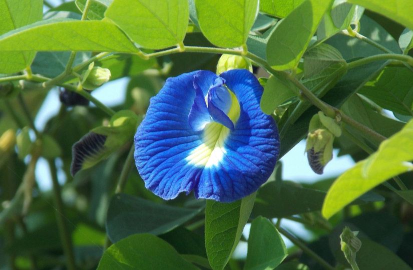 - За синий цвет анчана отвечает высокое содержание веществ под названием антоцианы. Они помогают бороться с воспалительными процессами и способствуют лучшему расщеплению жиров и углеводов. Благодаря антибактериальному и противовоспалительному действию, клиторию можно использовать в качестве вспомогательного средства при лечении простуд и ОРВИ.