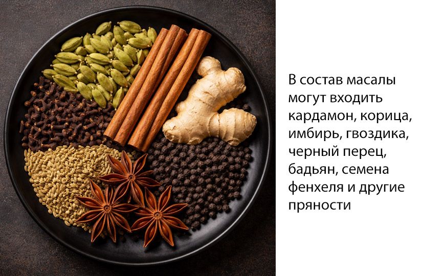 Масала — не название напитка, а смесь индийских пряностей, которую добавляют и в карри, и в маринады, и в выпечку. С чаем она стала ассоциироваться не так давно. Напомним, что чайные плантации и традиции появились в Индии только в XIX веке благодаря Британии.