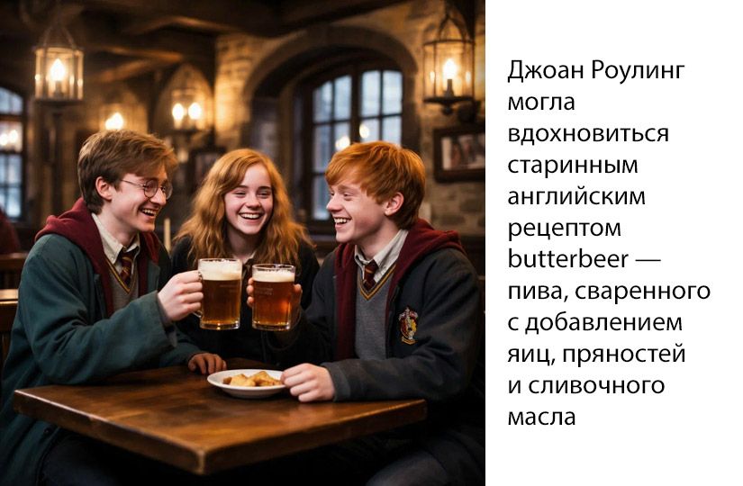В этом напитке нет ни чая, ни кофе, но мы просто не могли пройти мимо этого рецепта. А «по мотивам» назвали его потому, что ни в фильме, ни в книгах ингредиенты не упоминались. Фанаты «Гарри Поттера» даже спорят, было ли сливочное пиво хмельным, ведь, с одной стороны, его продавали школьникам, а с другой — от него пьянели домашние эльфы. Возможно, сказочный напиток был похож на квас: слишком слабый для людей и весьма крепкий для маленьких существ.