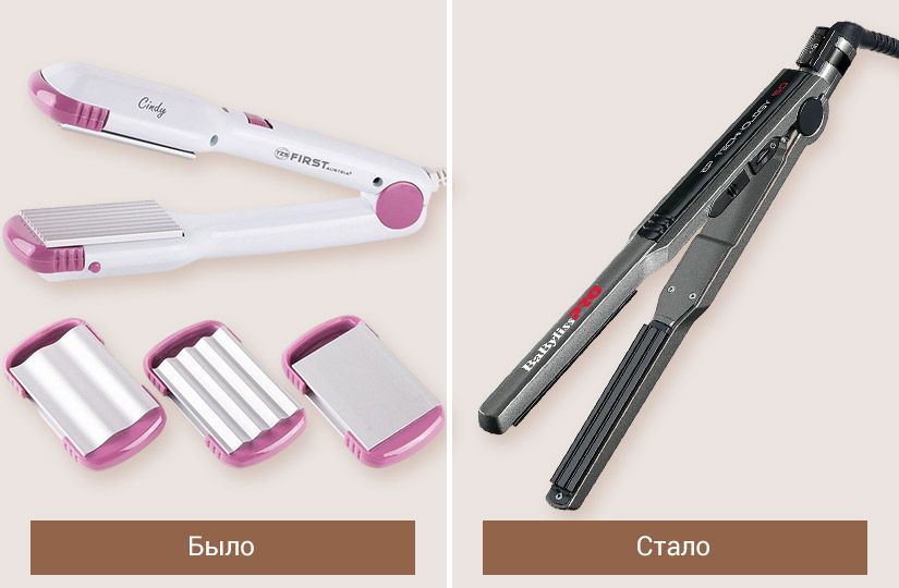 С приходом тренда на воздушные и небрежные укладки волны-гофре попали в ряды безвкусицы. А вот сами щипцы никуда не делись и превратились в девайс для создания прикорневого объема. Из-за этого они стали более узкими и потеряли арсенал своих насадок.