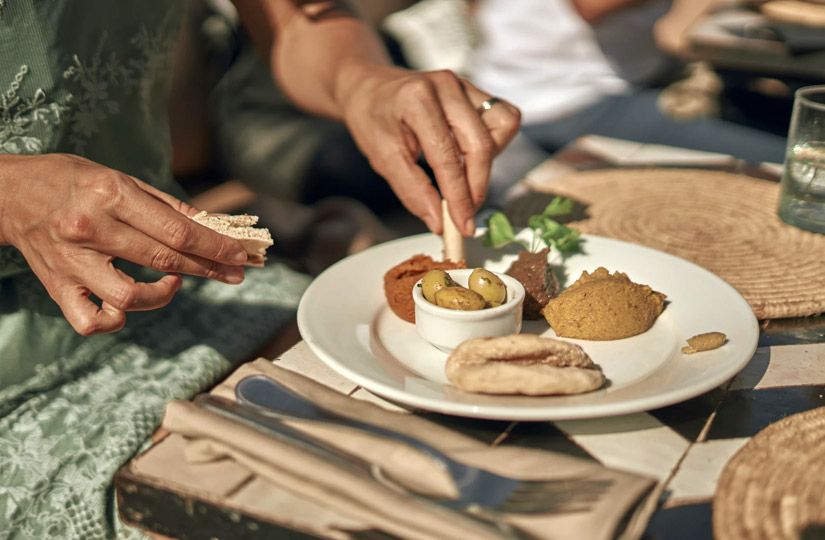 В целом израильтяне, палестинцы, ливанцы, египтяне, марокканцы и арабы сходятся в одном: хумус нужно есть лепешкой пита, сворачивая кусочек так, чтобы из него получилась миниатюрная съедобная ложка. На Востоке эту закуску подают как самостоятельное блюдо, вместе с нарезанными помидорами, огурцами, кинзой и другой зеленью, вареными яйцами, оливками, маринованными острыми овощами и рисом.